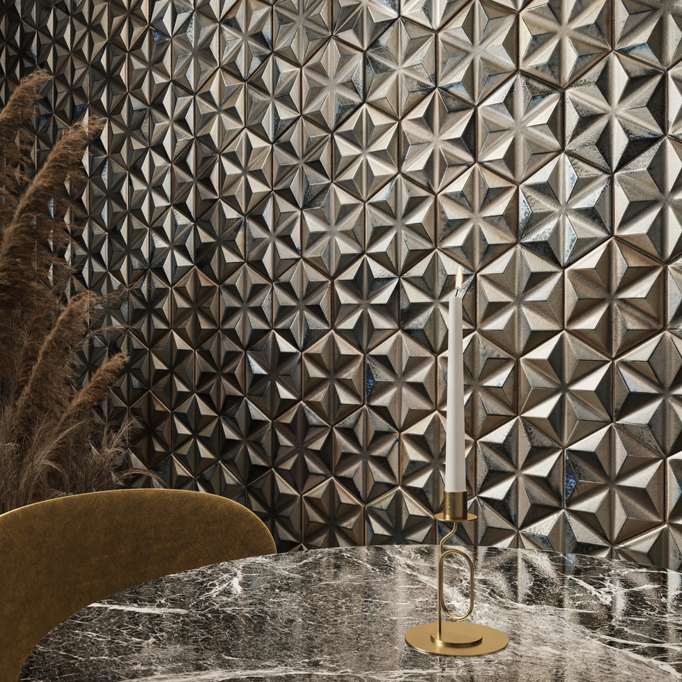 Geometric shapes stand out in shades of blue that seem to glimpse infinity in an array of shades ranging between violet and light blue. A rediscovered manifesto that pays homage to the great master Kandinsky.