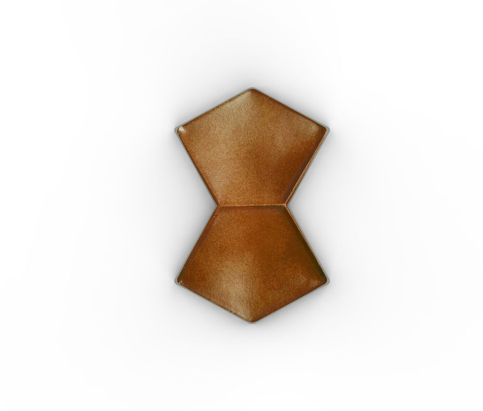 The butterfly revisited in an abstract form unites two pentagons that play with the colors of the artistic enamels.