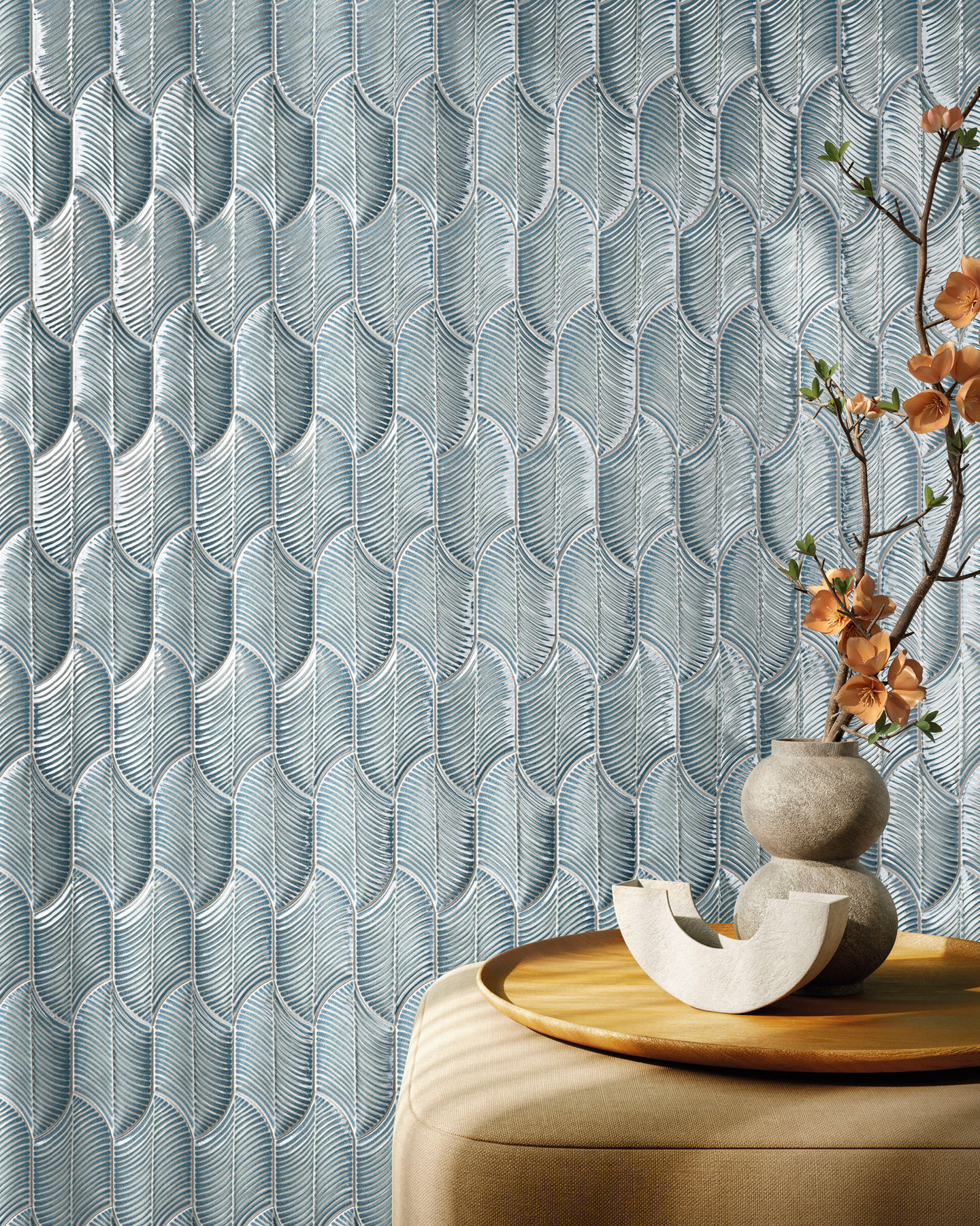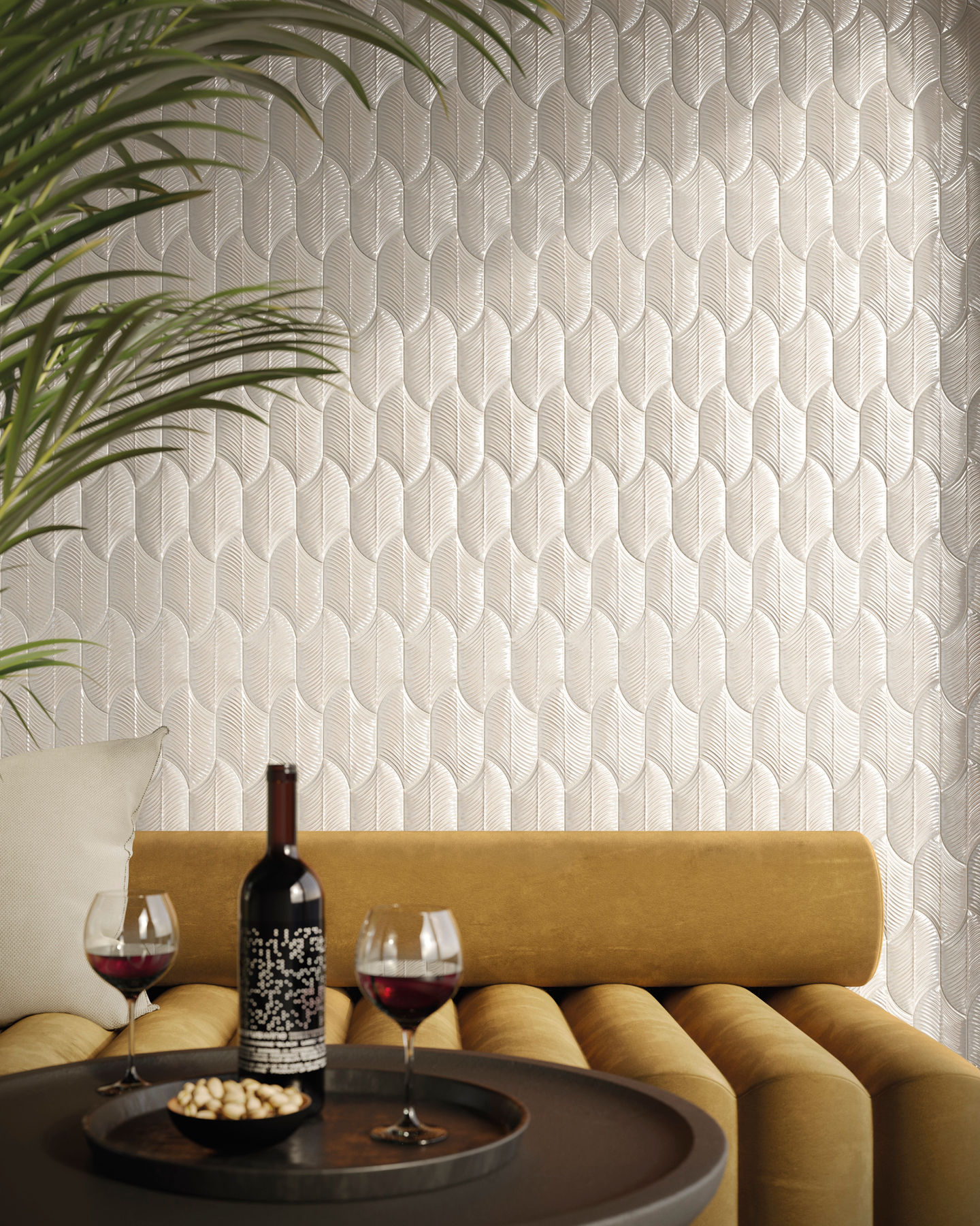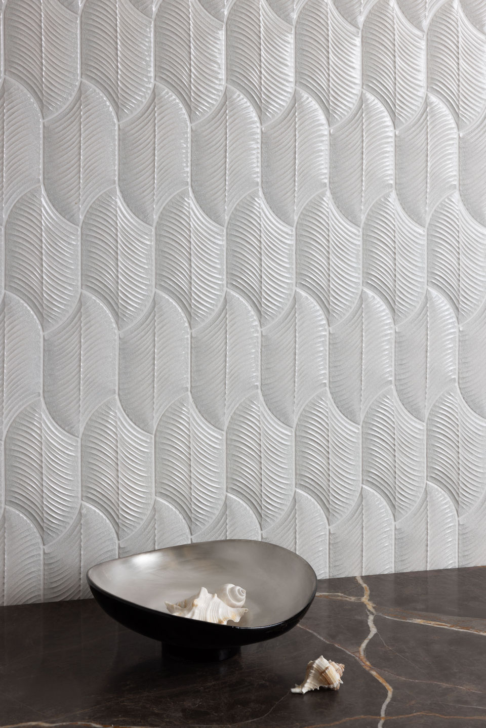 The Wadi Rum collection was born from the observation of the dunes and wind-sculpted landscapes of the Jordanian desert, reinterpreted through a sophisticated, textured design. The ceramic surfaces, characterized by a three-dimensional relief texture, evoke the sinuous movement of the sands, creating walls that become the focal points of architectural spaces.